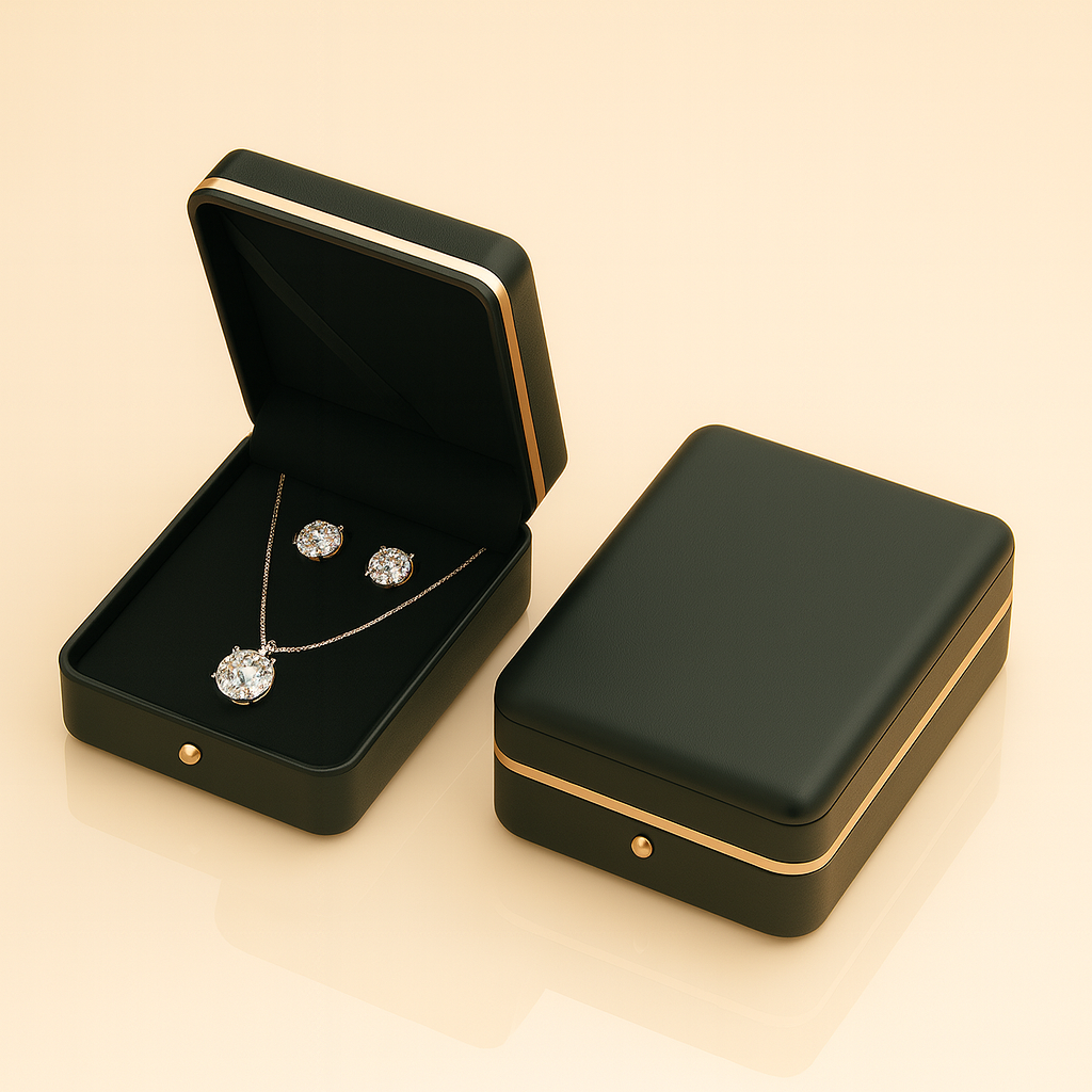 Caja para sets pequeños de joyería, como colgante con aros.