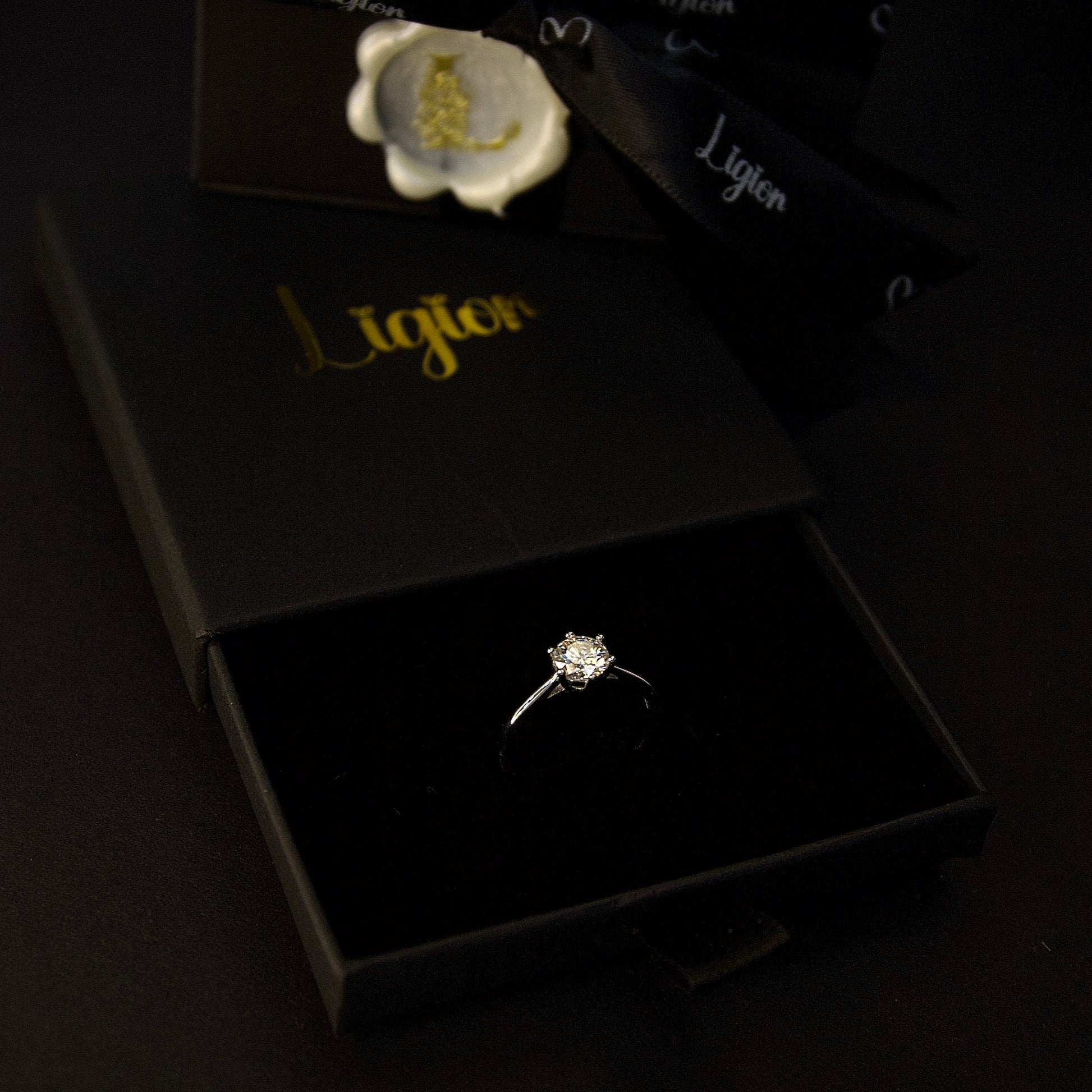 Elegancia moderna en su máxima expresión: un anillo con moissanita central de 1 quilate, montado en una delicada base de plata 925. La piedra, con corte brillante, refleja la luz con una intensidad comparable al diamante.