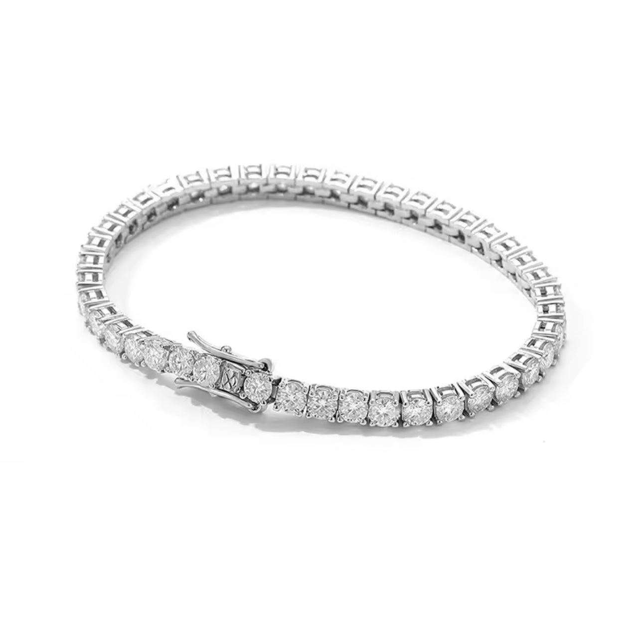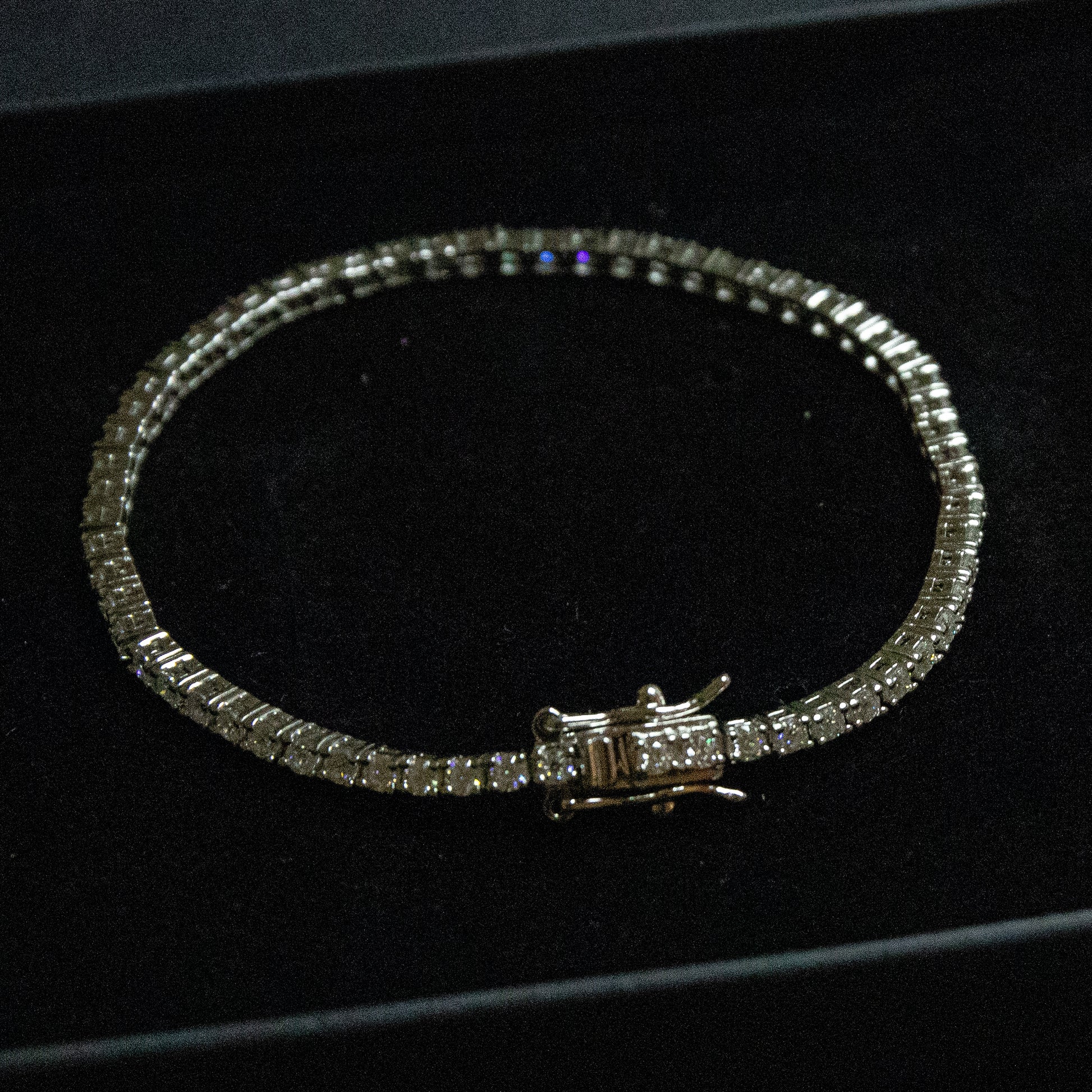 Pulsera elegante en estilo tenis, con piedras de moissanita de 2 mm (0,3 ct cada una), reconocidas por su brillo intenso y claridad comparable al diamante.